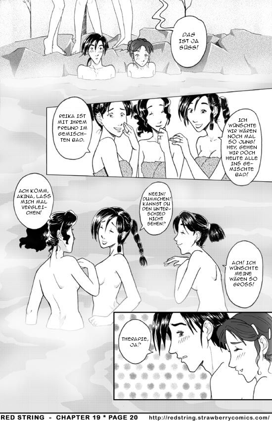 Die Mütter sind wirklich ... abenteuerlustig, vorsichtig ausgedrückt. Nicht nur, dass sie im gemischten Bad sind, sie sind auch noch unverhüllt. Die meisten (wenn nicht alle) Frauen tragen ein großes Handtuch, um sich zu bedecken, während sie sich im gemischten Bad aufhalten. In den nach Geschlecht getrennten Bädern gehen die Leute natürlich nackt ins Wasser. Vielleicht haben die Damen an diesem Morgen ein wenig früh dem Sake zugesprochen.