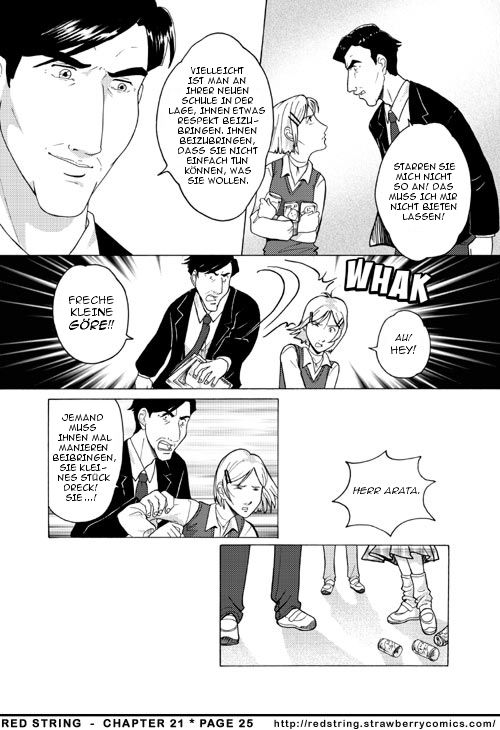 Bei dieser Seite sind ein paar Erläuterungen angebracht. Jemandem in die Augen zu sehen wie Miharu es tut wird als äusserst unhöflich betrachtet. In Japan ist es nicht ungewöhnlich, dass Lehrer Schüler bestrafen, indem sie ihnen mit einer zusammengerollten Zeitung einen Schlag auf den Kopf geben. Männliche Lehrer geben ihren Schülern von Zeit zu Zeit einen solchen Klaps. Herr Arata geht bei Miharu definitiv zu weit.